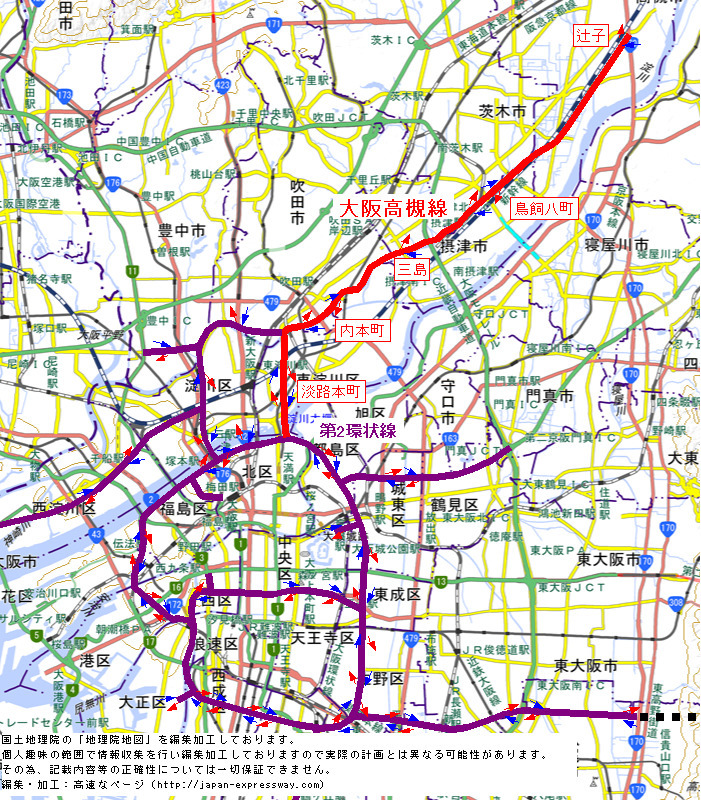 ただ、現状の大阪市内から摂津、茨木、高槻への車でのアクセスの悪さを考えると、第2環状線に拘らず守口線の長柄から分岐させて高槻へ向かうなどの代替案を考えても良かったのではないかと思います。