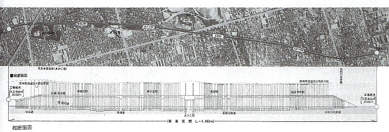 ↑都市計画が決定していた区間の縦断面図です。(クリックすると別窓で大きい画像が開きます)